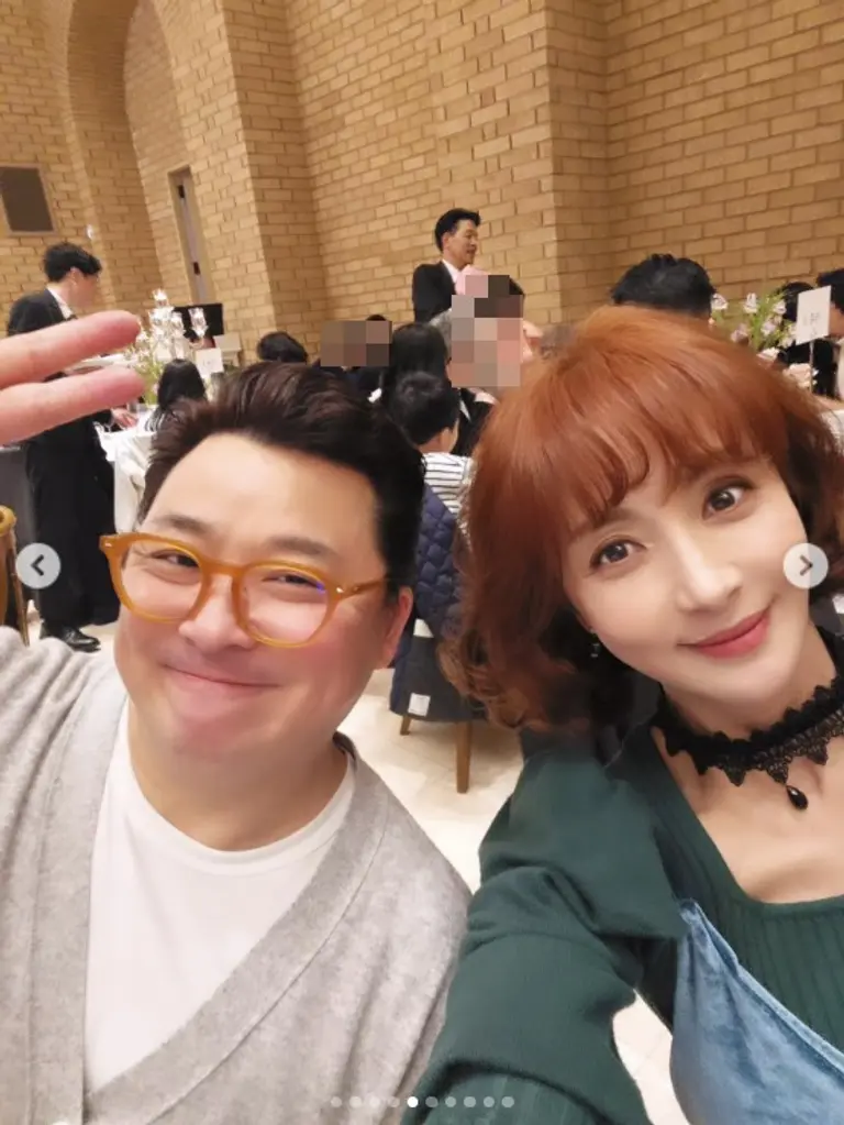윤해영이 공개한 사진에는 배우 김성수, 가수 배기성, 전 농구선수 우지원, 그리고 최근 결혼식을 올린 코미디언 윤정수와 아내 원진서 부부 등 여러 스타들의 모습이 담겼다. 특히 윤정수와 함께 찍은 사진에는 류시원이 미모의 아내와 함께 손님들에게 감사 인사를 전하는 모습이 포착되어 눈길을 끌었다.