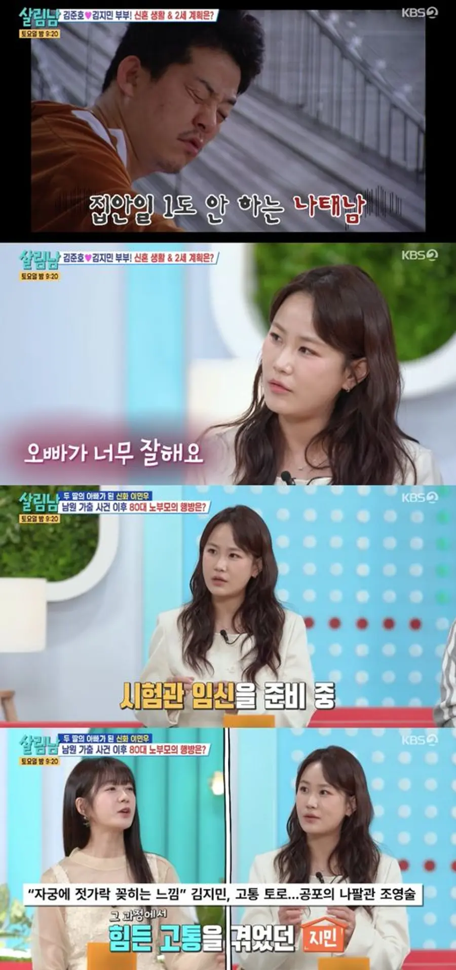 특히 김지민은 남편 김준호의 환골탈태한 모습을 강조했다. 과거 일주일 넘게 설거지를 미루며 날파리와 동거하던 김준호가 결혼 후에는 음식물을 즉시 처리하고 분리수거까지 완벽하게 해내는 '살림꾼'으로 거듭났다는 것이다. 다만 그는 사소한 생활 습관 차이로 인한 현실적인 고충도 털어놓으며 시청자들의 공감을 샀다.