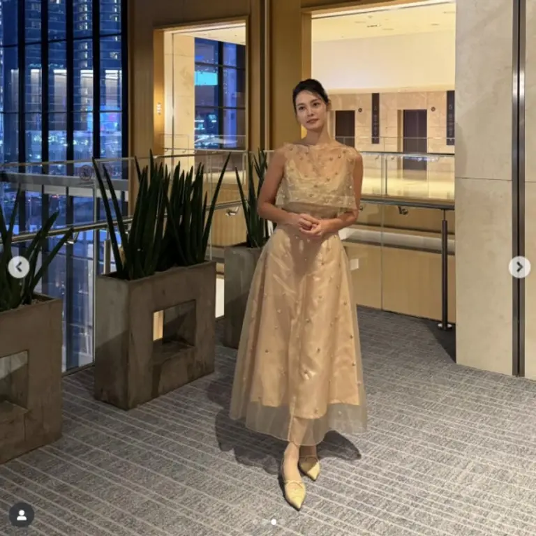 공개된 사진 속 안현모는 서울의 한 호텔로 보이는 장소에서 누드 톤의 드레스를 입고 포즈를 취하고 있다. 우아하게 머리를 올린 스타일링을 한 그는 식사 중 카메라를 보며 환하게 미소를 짓고 있다. 또 다른 사진에서는 행사 현장으로 추측되는 홀에서도 포즈를 취하며 매력을 발산했다.