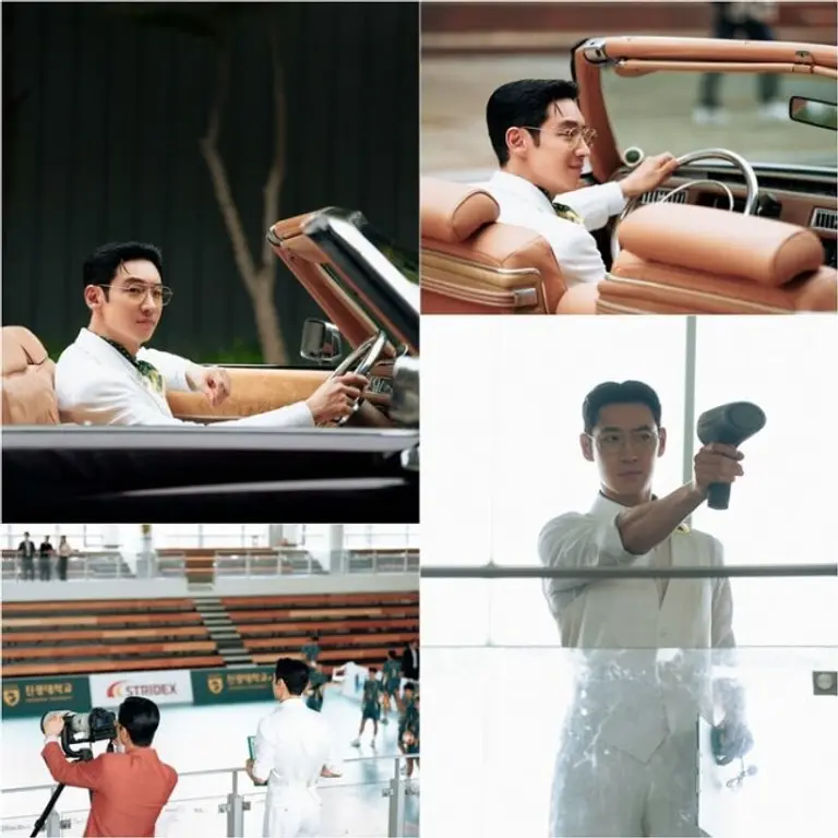 공개된 스틸 사진 속 김도기는 세련된 포마드 헤어, 고급스러운 쓰리피스 정장과 패셔너블한 스카프 스타일링을 통해 완벽한 '이태리 신사' 비주얼을 구현했다. 평소의 모범택시가 아닌 정통 클래식카의 운전대를 잡은 모습에서는 엘레강스한 매력이 폭발한다. 또한 배구 경기장 안에서는 진지한 눈빛으로 선수들의 움직임을 관찰하고 있으며, 스피드 건을 손에 쥔 자태에서도 품격이 흘러넘쳐 감탄을 자아낸다.