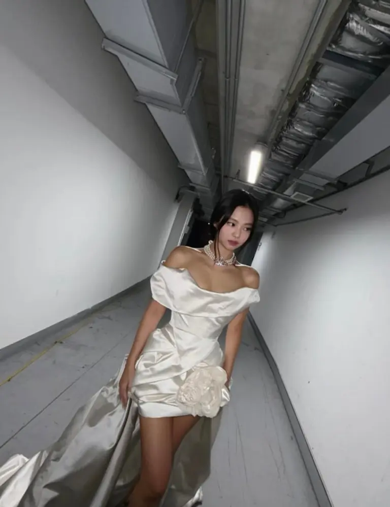 그룹 블랙핑크의 멤버 제니가 시상식 무대 뒤 화려한 드레스 자태를 공개하며 팬들의 시선을 사로잡았다.