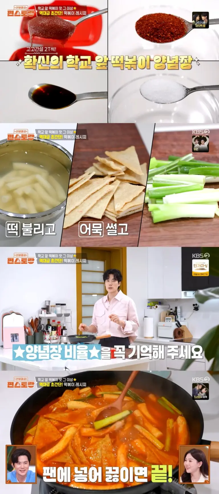 배우 김강우가 익숙한 국민 간식 떡볶이에 피자의 풍미를 결합한 이색 메뉴 둘둘 떡볶이 레시피를 선보여 시청자들의 입맛을 사로잡았다.
