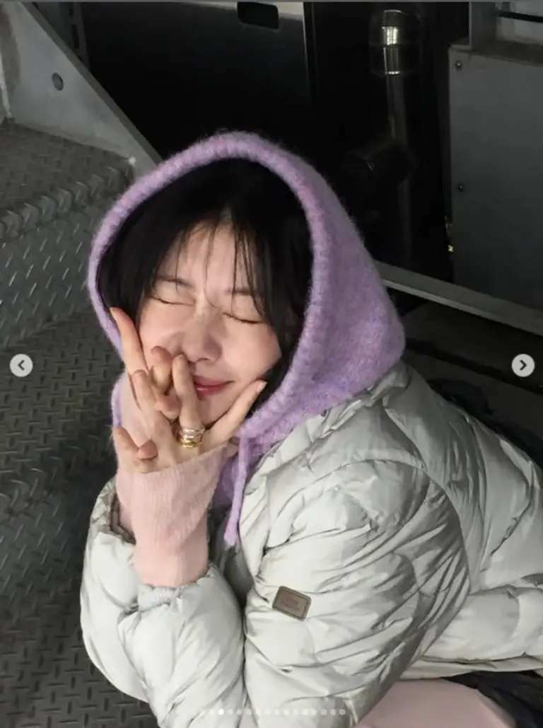 공개된 사진에서 정소민은 화사한 연보라색 바라클라바를 착용한 채 귀여운 포즈를 취하고 있다. 어딘가에 살짝 쭈그려 앉아 카메라를 응시하는 정소민의 모습은 마치 10대 소녀라고 해도 믿을 수 있을 만큼 청순하고 싱그러운 분위기를 풍겼다. 특히 잡티 하나 없는 투명한 피부와 맑은 눈망울이 조화를 이뤄 명실상부한 동안 미모의 정석을 보여주었다.