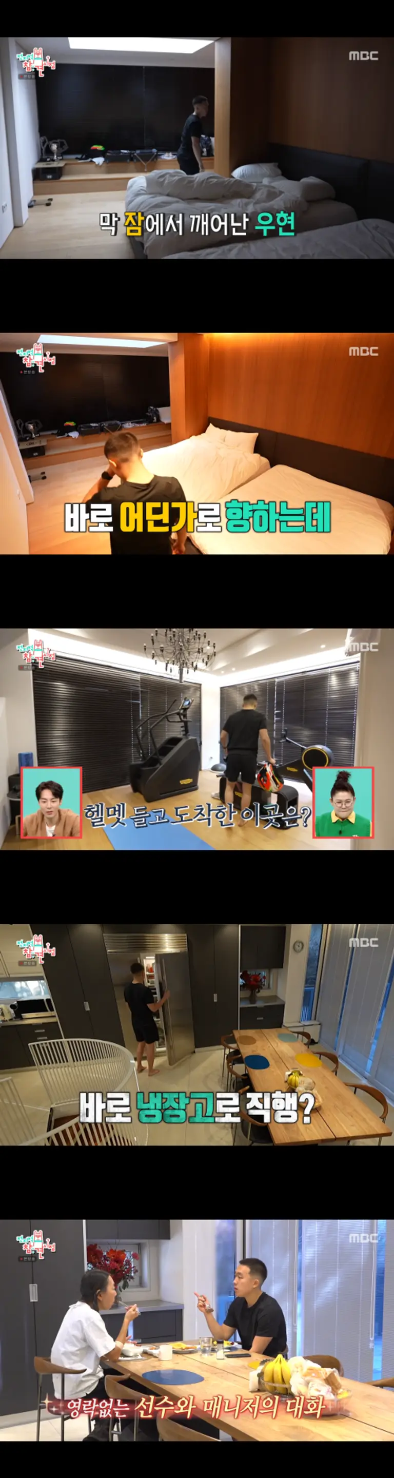 특히 집 안에 마련된 개인 트레이닝룸은 출연진들을 경악하게 만들었다. 신우현은 헬멧을 착용한 채 강도 높은 훈련을 이어갔고, 이를 본 양세형은 집 안에 지옥의 계단이 있다며 그 규모와 열정에 혀를 내둘렀다. 식단 관리 또한 독했다. 신우현은 어머니 정윤이 씨와 식단을 분리해 직접 무게와 칼로리를 측정하며 식사했다. 그는 1kg만 늘어도 레이스 마지막에 1, 2초 차이가 난다며 프로다운 면모를 보였다.
