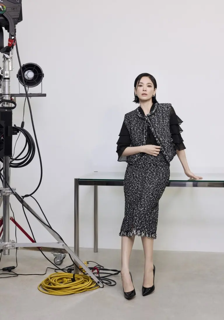 공개된 화보 속 송혜교는 고요하면서도 단단한 에너지를 발산했다. 테일러드 수트를 입은 모습에서는 도시적인 카리스마가 느껴지는가 하면, 트위드 셋업과 플레어 스커트 스타일링에서는 부드럽고 섬세한 여성미가 공존해 감탄을 자아냈다. 과장된 포즈 없이도 시선 처리 하나만으로 고유의 분위기를 완성하는 송혜교만의 표현력이 돋보였다.