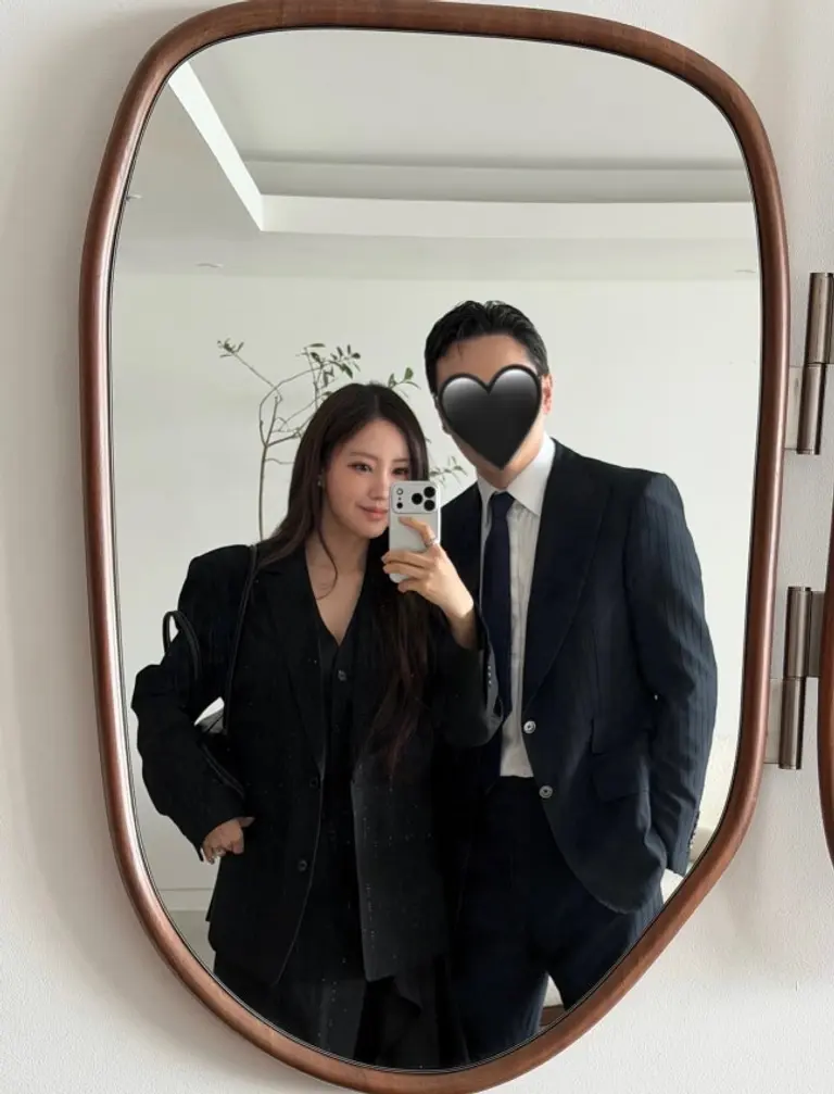 공개된 사진에는 효민이 남편과 함께 슈트를 맞춰 입고 나란히 서 있는 모습이 담겼다. 남편의 얼굴은 가려졌지만, 두 사람의 훈훈하고 다정한 모습이 시선을 사로잡는다. 또한 효민은 순백의 웨딩드레스를 입은 함은정과 함께 찍은 사진을 올리며 티아라 멤버 간의 끈끈한 우정을 과시해 팬들의 이목을 집중시켰다.