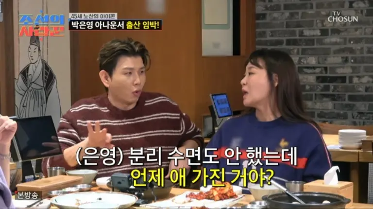 지난 26일 방송된 TV조선 예능 프로그램 '조선의 사랑꾼'에서는 둘째 출산을 앞둔 방송인 박은영이 5형제의 어머니인 정주리를 만나 출산 노하우를 전수받는 장면이 전파를 탔다. 이날 박은영은 정주리로부터 전수받은 '자연분만 힘주기 비법'을 생생하게 재연해 현장을 웃음바다로 만들었다.