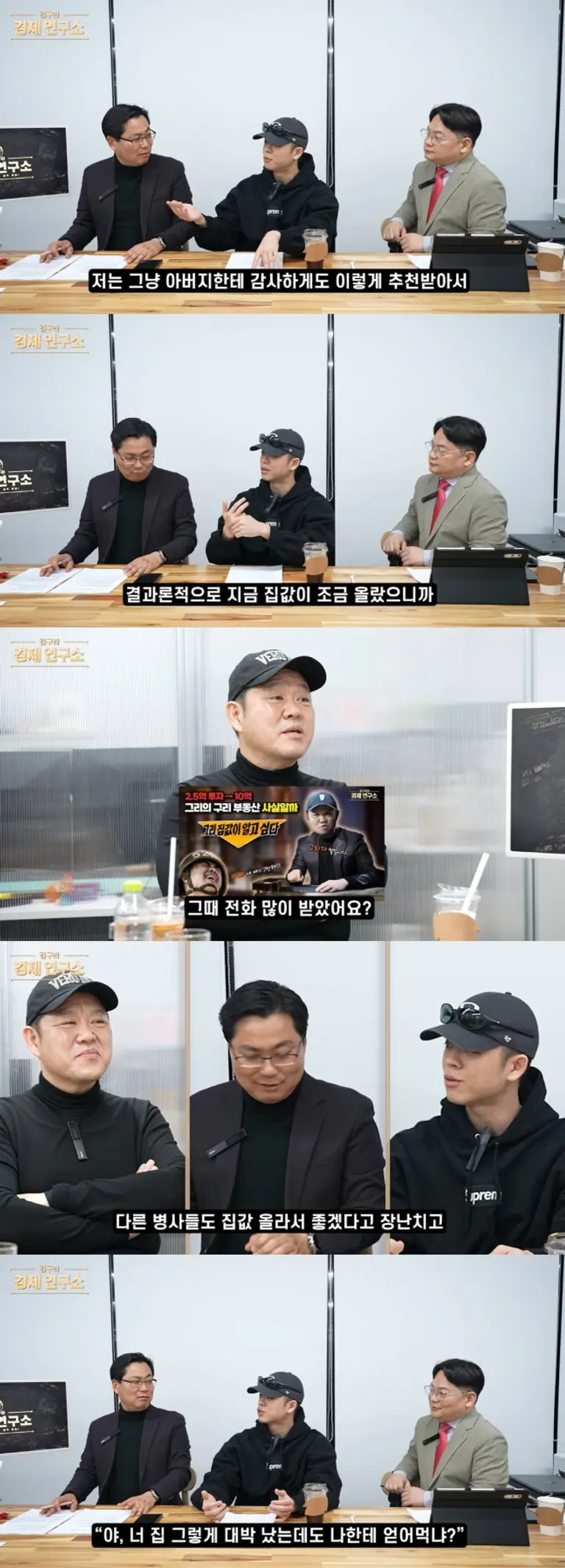 군 복무 중인 그리는 부대 내에서의 에피소드도 전했다. 그는 "100여 명의 간부가 있는 부대인데, 30대 초반 간부들이 '어떻게 알고 샀느냐'며 질문 공세를 퍼부었다"고 털어놨다. 이어 "상급자들이 밥을 사줄 때도 '집값 대박 났는데 얻어먹냐'는 농담을 듣기도 했다"고 덧붙여 웃음을 자아냈다.
